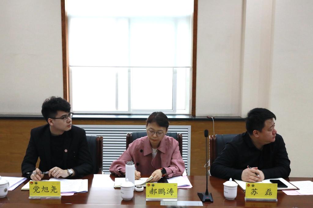 本网讯 3月25日,团省委学校部部长郝鹏涛、学校部四级调研员苏磊、省学联驻会执行主席党旭尧一行来我校调研共青团、学生会、学生社团工作。党委委员、党委宣传部部长张朝阳与调研组在会前进行了交流。调研座谈会在二号行政楼一号会议室召开,校团委全体成员、二级学院团委代表、学生会、研究生会、社团学生代表参加,会议由校团委文体与实践创新部部长刘转主持。
