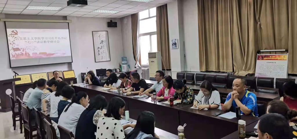 本网讯    7月5日上午9点,马克思主义学院在校图书馆三楼会议室召开了学习习近平总书记在庆祝中国共产党成立100周年大会重要讲话精神教学研讨会,会议由马克主义学院院长秋实主持,全体教师参加了研讨会。