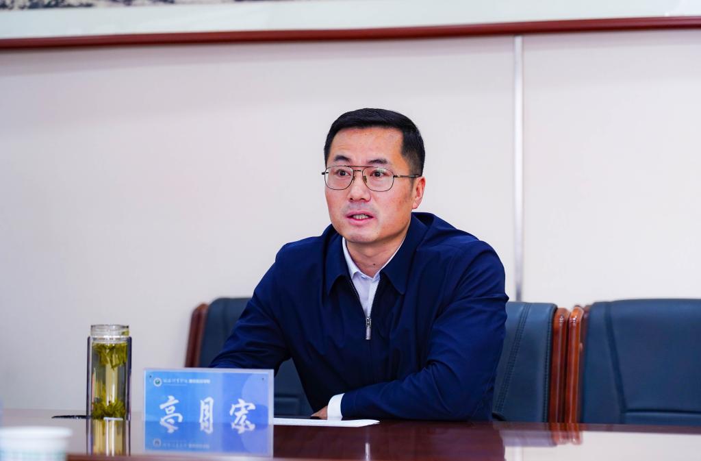 高月宏代表体育教育学院对赵智岗一行表示热烈欢迎,并从学院基本情况、党建工作、思想政治教育工作和毕业生就业工作等四个方面进行了详细介绍,分享了学院工作理念和开展情况。对于党建工作和思想政治教育工作,高月宏表示,一是坚持党建必须围绕学院事业发展中心服务大局,构建党建工作格局,持续推进党风廉政建设,抓强组织“标准化”建设,抓紧党员“动态化”管理;二是坚持立德树人,扎实推进全员、全过程、全方位“三全育人”体制,强化以体育人特色,树立“思政+体育”的理念,抓实课程思政,将体育特色化元素融入课堂教学,努力将党建和思想政治优势培植成学生成才的优质土壤,转化为学院的发展优势,提高人才培养质量。对于毕业生就业工作,高月宏就我院深化校企合作,探索“订单式”人才培养模式,以及推广软式棒垒球、高尔夫、击剑、马术及现代五项等新兴运动项目,赋能毕业生就业等方面的成效和探索经验进行了分享,并一起观看了新华社对我院“新兴体育运动进校园提升中国大学生‘就业力’”的视频新闻报道。